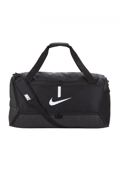 V odolné fotbalové sportovní tašce Nike Academy Team budeš mít ve věcech pořádek. V přihrádkách je dost místa na míč, kopačky i oblečení a díky několika různým popruhům se ti všechno bude snadno přenášet. Do hlavní přihrádky se kromě míče vejdou i další věci. Spodní oddíl se zipem na mokrou a suchou výbavu pomáhá udržovat čistotu a pořádek ve věcech. Výbava se za ruční a ramenní popruhy na tašce příjemně nosí. Do malé vnitřní kapsy a vnějších kapes na zip si můžeš schovat drobné cennosti.